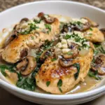 This Chicken Spinach and Mushroom Casserole is creamy, cozy, and quietly impressive, the kind of dish that makes a weeknight feel a little special. Tender bites of chicken are tucked into a velvety mushroom and spinach sauce, then finished with melted cheese and a crisp golden breadcrumb topping. It is hearty without feeling heavy and flexible enough to serve on its own or over rice, pasta, or a bed of greens. Perfect for family dinners, easy entertaining, or make ahead meals that still feel homemade and nurturing.